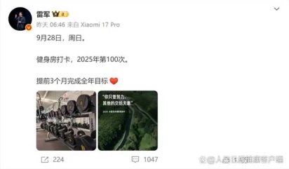 (人民日报健康客户端记者张爽)9月28日,雷军发微博表示已经完成年内第100次健身房打