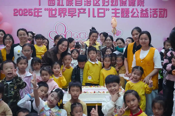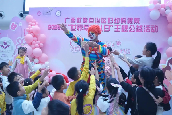 韦秋芬在致辞中表示,作为广西危重新生儿救治中心和国家级新生儿保健特色专科单位,医院扎实推进“儿童友好型医院”建设,持续开展“儿科和精神卫生服务年”工作,落实为民服务实事项目,持续推进妇幼健康事业高质量发展。医院始终秉持“有爱,有未来”的理念,强化与社会各界联动,致力于为早产儿构建全周期健康服务体系。医院医护团队以专业与温情为双翼,为每一个“早到天使”的成长之路倾注守护之力,让爱与希望照亮生命的起点。 活动当天,医院为6名正在接受救治的早产儿家庭颁发了共计10万元的医疗救助金。近年来,医院共帮助900多名早产儿申请专项救助及众筹项目,筹集救助善款约1800万元人民币,有效缓解了早产儿家庭的经济压力,为患儿康复提供了坚实保障,更彰显了公立医院的公益属性和社会责任。这正是医院“以爱心护航生命”公益初心的生动实践,为无数濒临困境的家庭重燃了希望之光。 现场活动精彩纷呈,设有气球魔术表演秀、亲子互动游戏、自由趣味玩乐等环节,吸引了众多早产儿家庭参与。多名曾在该院接受救治的“早到天使”逐一登台,展示朗诵、舞蹈、唱歌等才艺,孩子们自信的笑容和蓬勃的生命力,让现场观众感受到爱的力量。这些孩子曾在保温箱中历经重重考验,在医护团队的精心照料下顽强成长,如今在家庭的温暖滋养中绽放光彩,成为“生命奇迹”的生动见证。