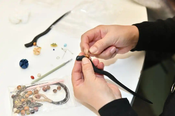 隔壁的艾灸区,年轻的上班族们纷纷感叹,“这比咖啡更提神,还不怕喝多了睡不着觉。”当工作压力与亚健康状态成为常态,中医药温和调理的理念,恰好为年轻人的健康管理方式提供了一种新的方案。 文化在指尖重生 年轻一代对传统文化有着独特理解。他们不再被动接受既定知识,而是通过亲手创造,让古老文化在当代生活中找到新的表达方式。 本草潮玩DIY区内,中草药正经历着从“药材”到“潮品”的身份转变。参与者将黄芪、当归等药材精心制作成发簪、挂件,让传统文化以全新的形态陪伴日常生活。“我从来没想过中药还能够做成装饰品,对我来说这已经不仅仅是饰品了,更是可以佩戴的文化记忆。”一位正在制作草药胸针的“00后”说。 当草药的清香从药柜飘向日常配饰,文化的传承便不再局限于书本,而是在创造过程中自然流淌。