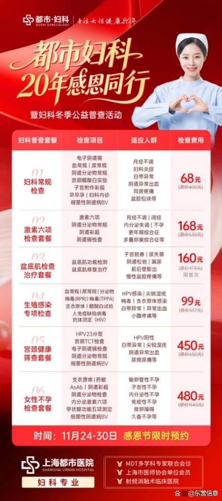 直面女性健康隐忧,打破冬季“潜藏”危机 冬季,人们往往因天气寒冷而减少外出与体检频率,一些身体的不适也容易被忽略。相关数据显示,妇科疾病的发病并无季节性,但其早期筛查与干预却可能因季节因素而迟滞。许多现代女性肩负事业与家庭的双重责任,常常因“工作日搞事业”、“周末在家带娃”、“羞于妇科检查”等心理,将自身健康排序置后,导致一些潜在健康风险未能被及时发现。 上海都市医院活动负责人指出:“健康管理不应因季节而“降温”。尤其在冬季,我们更应主动关注自身健康信号。许多妇科疾病在早期阶段通过规范筛查是可以有效管理的。上海都市医院发起此次活动的初衷,就是希望打破这种‘沉默’,为女性朋友们提供一个安心、便捷的专业检查机会,防患于未然。” “暖冬呵护”多维覆盖,构筑精准健康防线 据悉,上海都市医院本次“暖冬呵护”公益普查活动涵盖了多项贴合女性实际需求的筛查内容。活动不仅提供了妇科常规检查,更包括了能反映内分泌水平的激素六项检测、关注产后及中老年女性生活质量的盆底肌功能评估、作为宫颈癌一级预防手段的女性HPV检测,以及针对育龄人群的不孕相关因素筛查和至关重要的宫颈健康筛查。这一系列项目的科学组合,构建了一道从基础到专项的立体化健康防线。